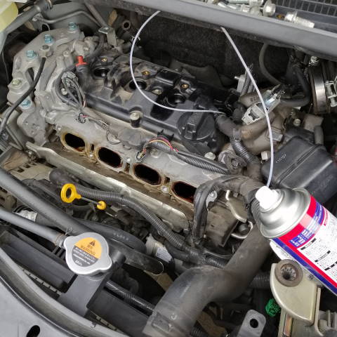 NC-900の施工はエンジン暖機後にプラグホールから注入。