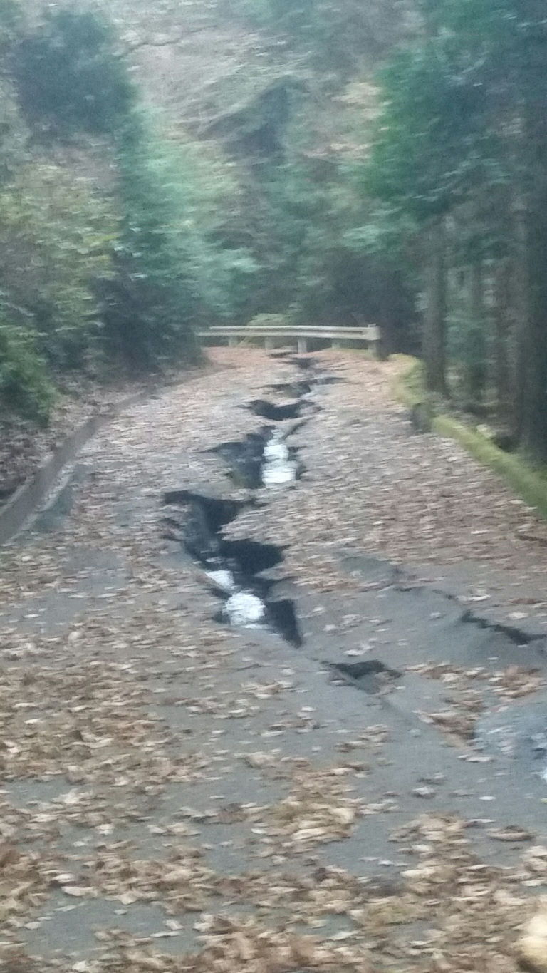 舗装林道に出て、あと数コーナー先にトランポってところで、