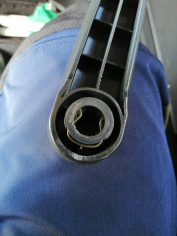着けるときは取っ手にピンを着けてからシャフトに差し込むだけ